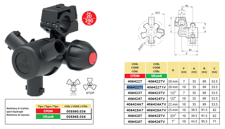 3 ÁLLÁSÚ REVOLVER SZÓRÓFEJ 20MM Ø CSŐRE, 10MM Ø FURAT